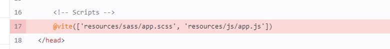 Para arreglar el error debemos quitar todas las referencias en el fichero resources/views/layouts/app.blade